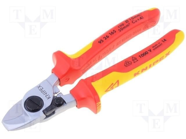 ![]() | 9526165 | Knipex | Cable Cutter, 15mm Capacity, VDE Insulated, Opening Spring, 165mm Length |
