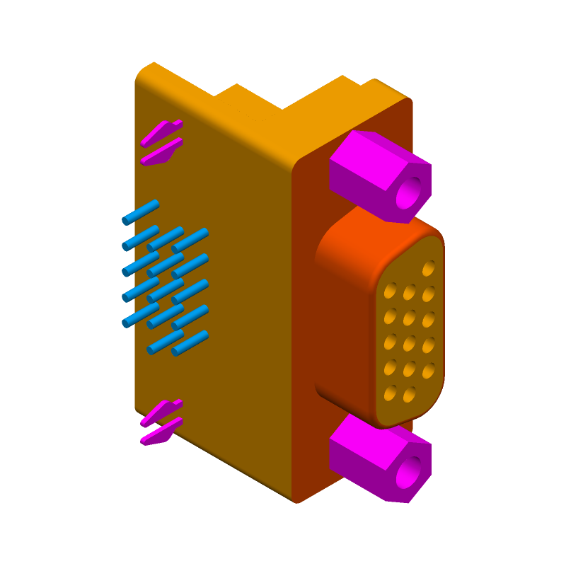 15 Pos D-Sub Connector, Female, Right Angle, Gold Plated Copper Alloy