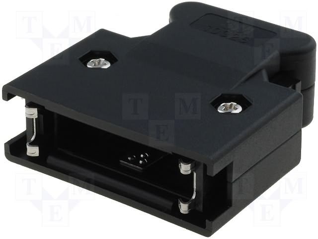 Plastic Connector Backshell; Enclosure Material:Polyester; Enclosure Color:Black; Features:For: 0.050" D-Miniature D Ribbon Connectors; Leaded Process Compatible:No; No. of Positions:26; Peak Reflow Compatible (260 C):No RoHS Compliant: No