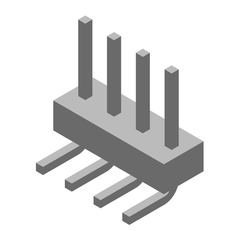 4 Pos 1 Row 2.54mm Pitch Male Header, 3A, Gold/Tin/Lead, Through Hole, RA