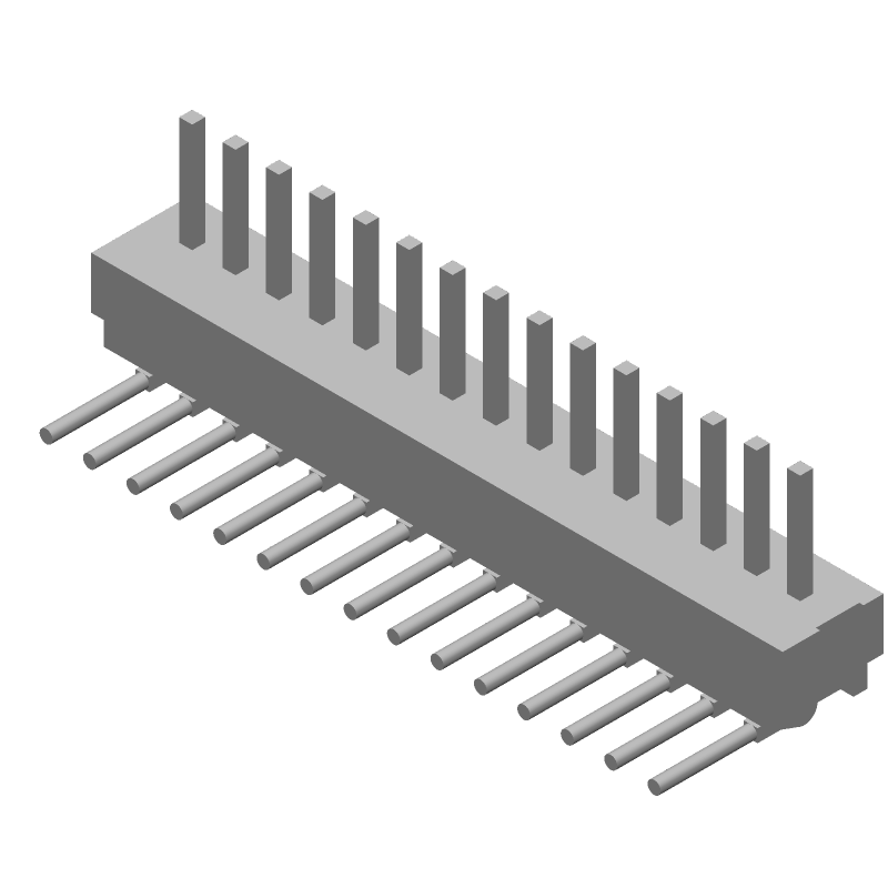 15 Pos 1.27mm RA Header, Thru-Hole, Gold/Tin