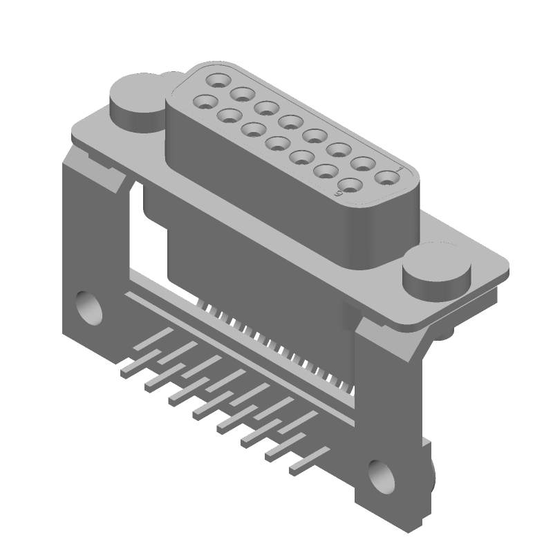 15 Pos Female D-Sub Connector, Right Angle, Gold/Tin Plated