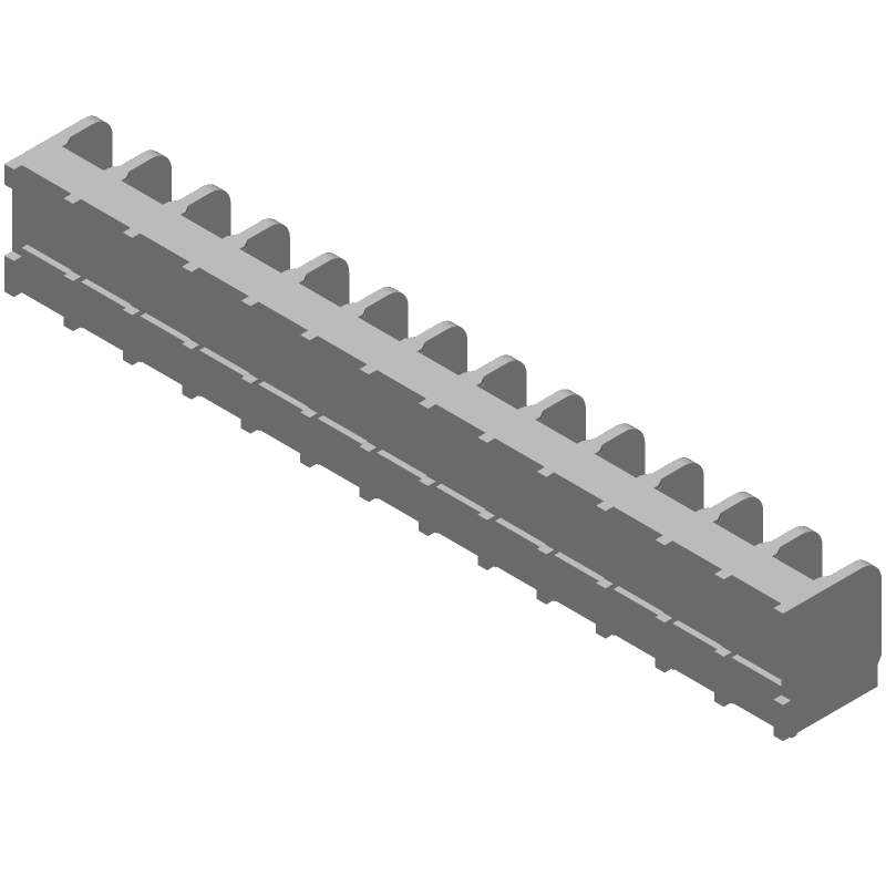 13 Pos Barrier Strip, 9.53mm, 25A, 300V, RA Solder Thru-Hole