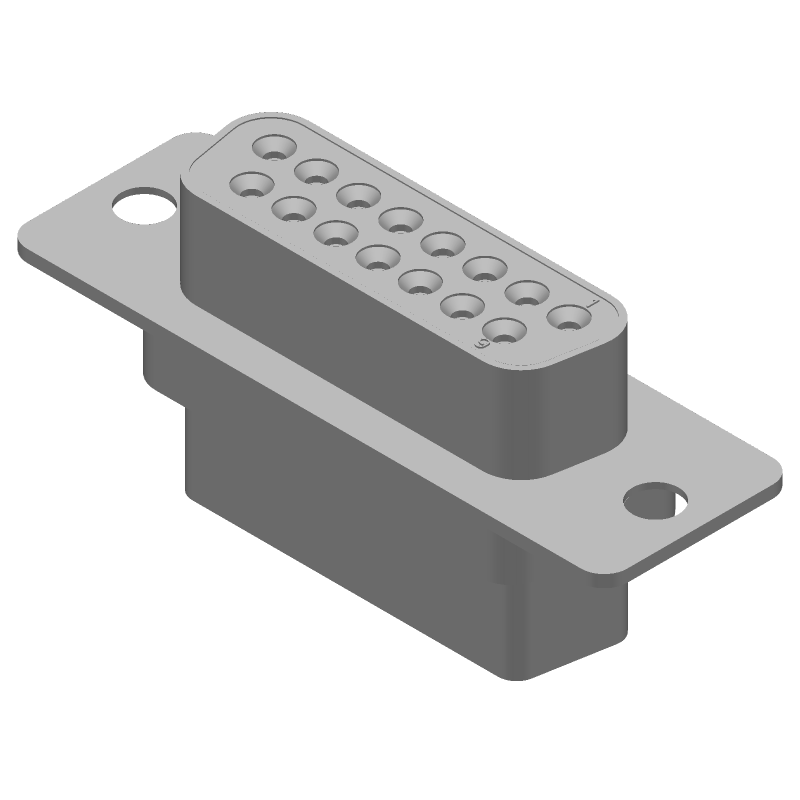 15 Pos D-Sub Connector, Female, Shielded, Crimp, 3.7A