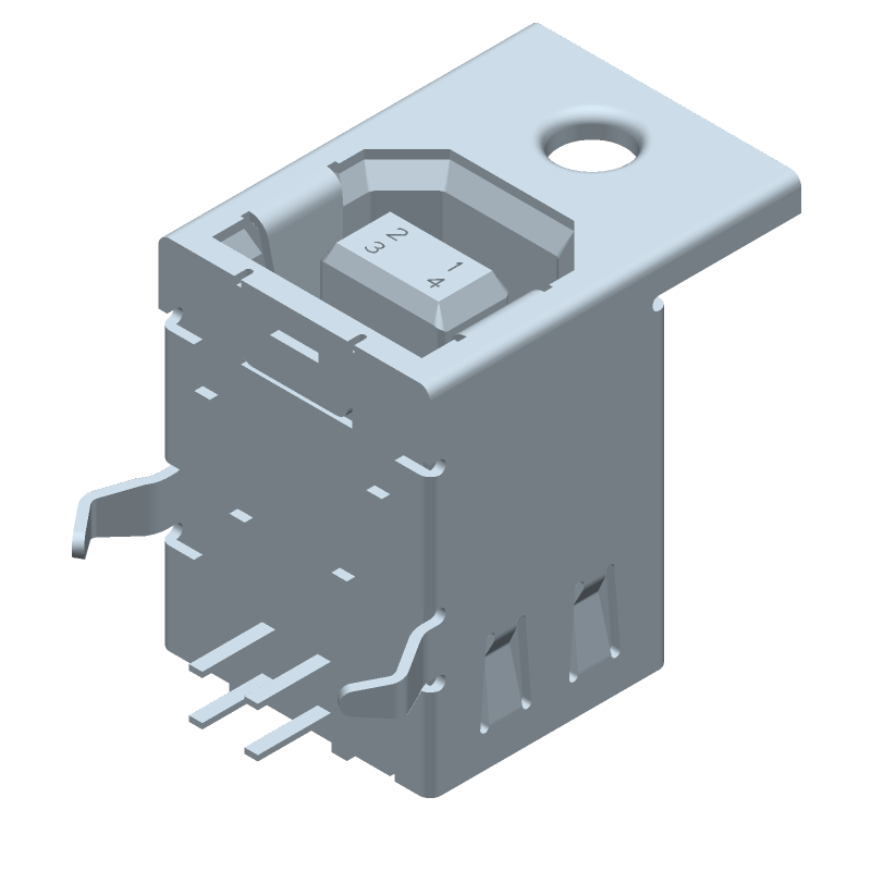 USB B Receptacle, 4 Pos, Right Angle, Through Hole, 1A