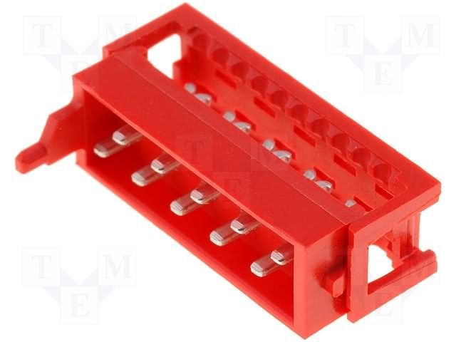 10 Pos 1.27mm IDC RA Header, 1.5A, 230V, Red