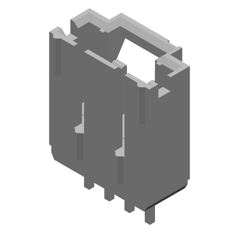 USB 2.0 Type A Receptacle, 4 Pos, 2.5mm Pitch, RA Thru-Hole
