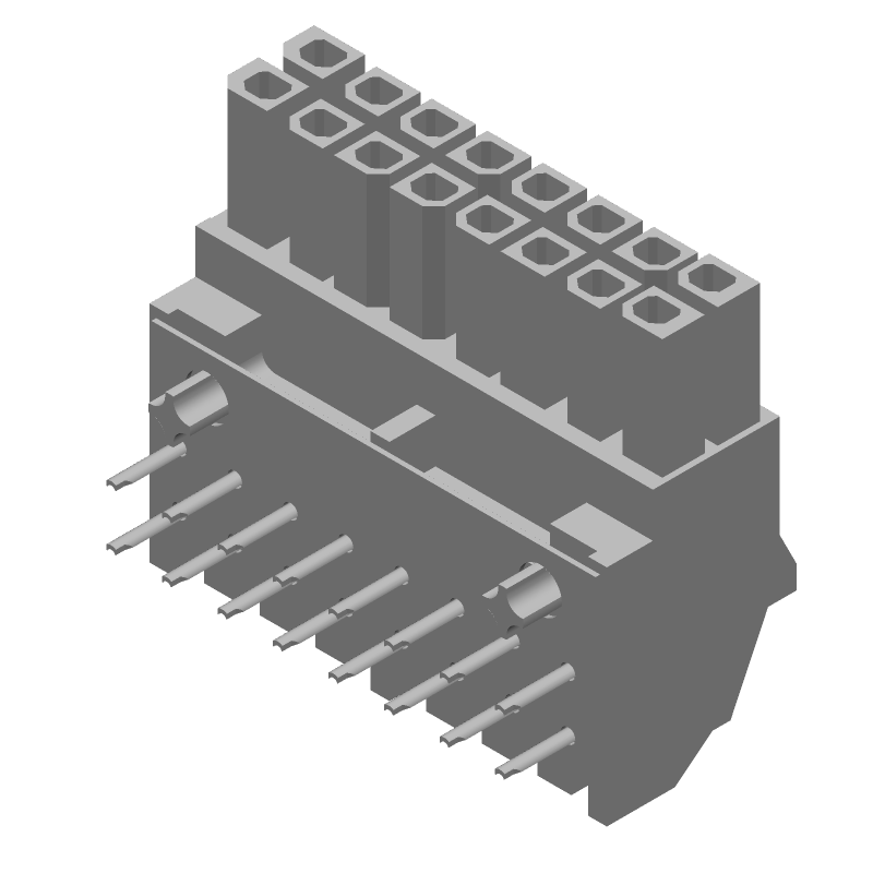 Micro-Fit BMI Receptacle Header, Dual Row, Right-Angle, with Press-fit Plastic Pegs, 2.54µm Tin (Sn), 22 Circuits