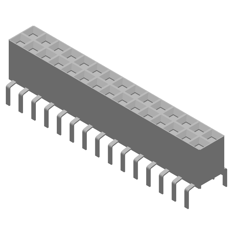 30 Pos 2.54mm Header Receptacle, 2A, Gold, Straight, Thru-Hole