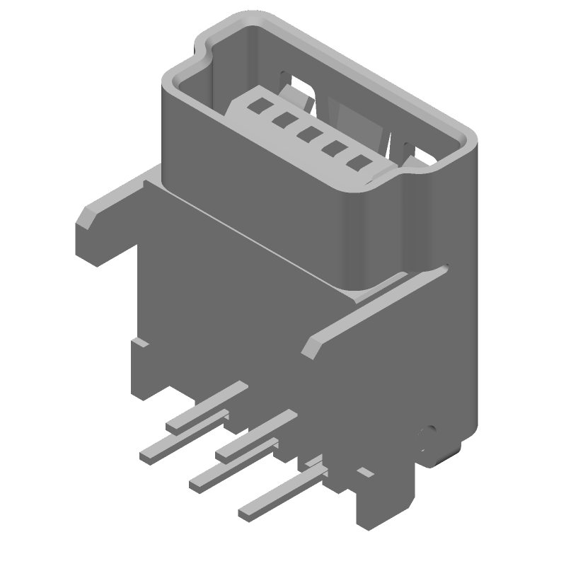 5 Pos Receptacle, Right Angle, Solder, USB 2.0, 1A, 30V