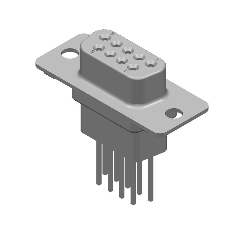 9 Pos Female D-Sub Connector, Straight, Through Hole, Gold/Tin Plated