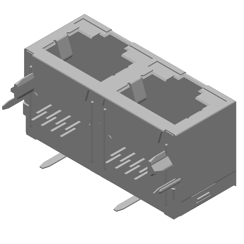 RJ11 Connector, 16 Pos, 2 Port, Shielded, Solder, RA, Thru-Hole