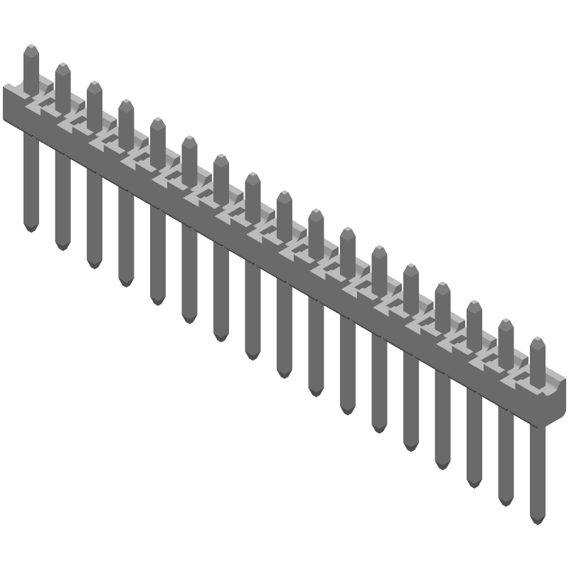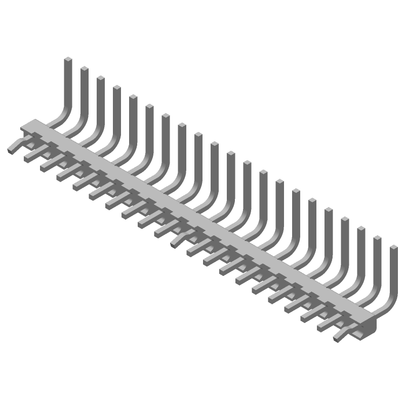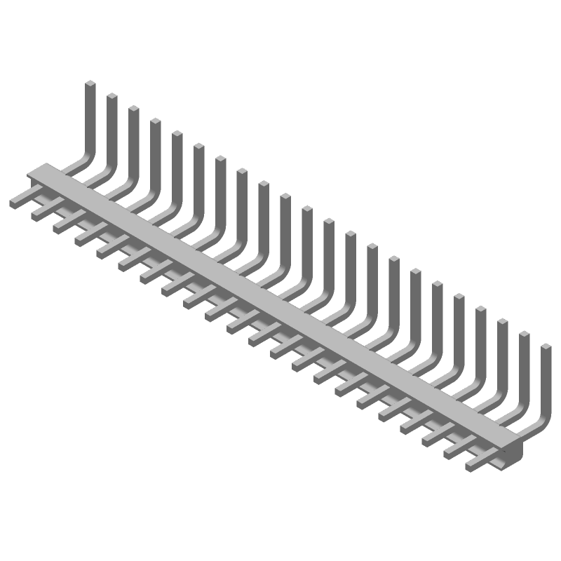 22 Pos 2.54mm RA Unshrouded Header, Solder, 5A, 250V
