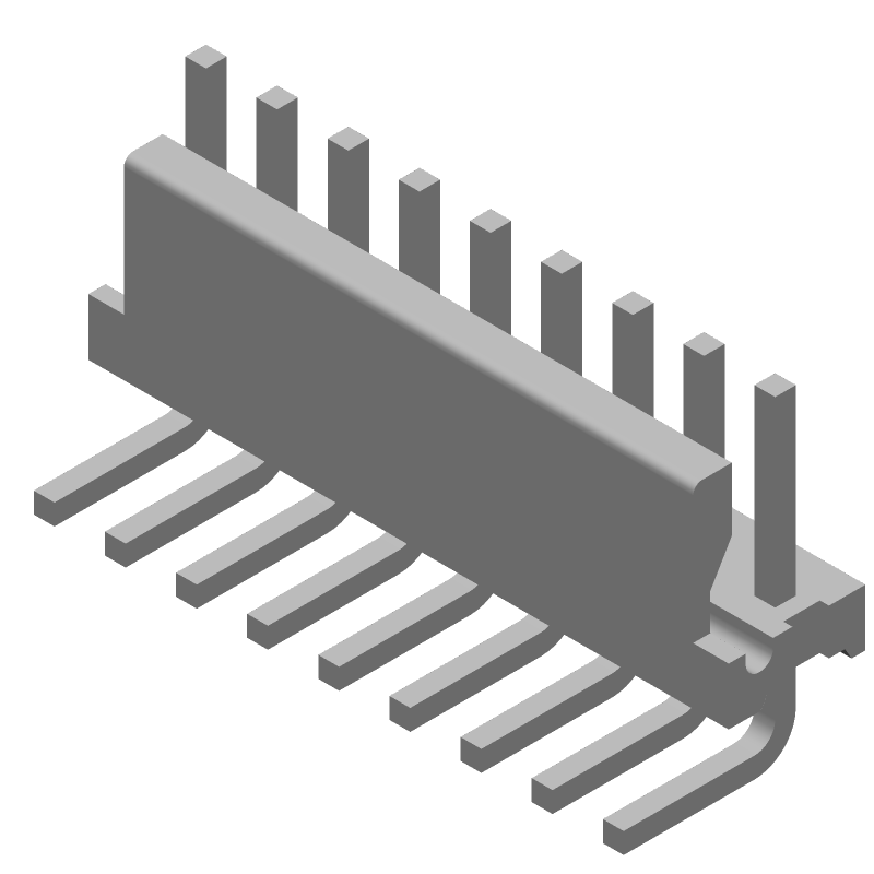 10 Pos 2.54mm RA Solder Header, 5A, Gold Plated
