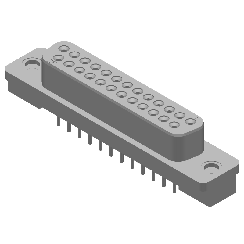25 Pos Female D-Sub Connector, Straight, Through Hole, Gold/Tin/Lead Contacts