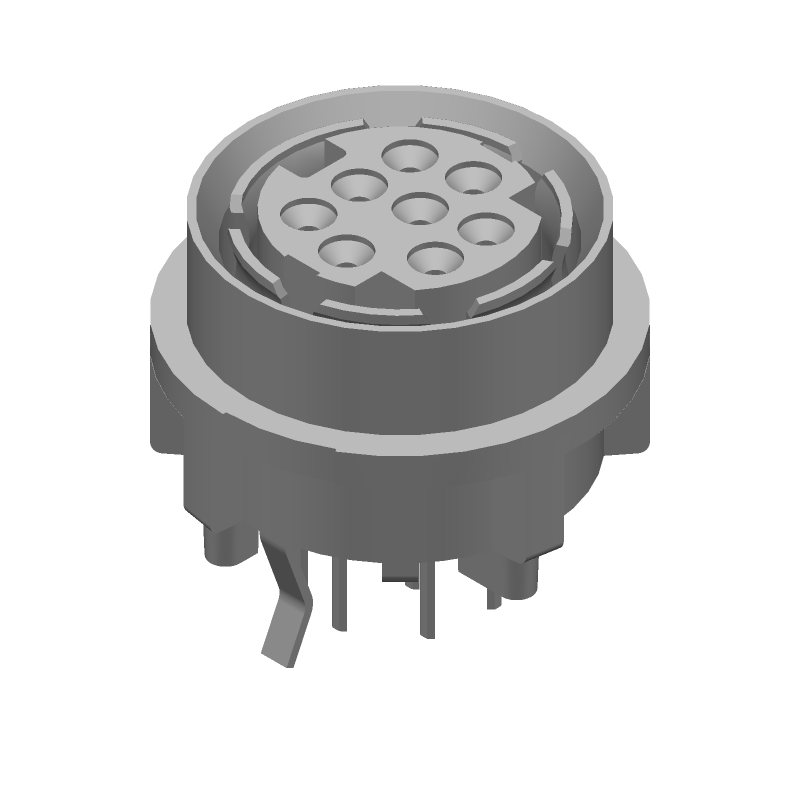 4 Pos Shielded Circular Connector, Female, Straight, Solder, Thru-Hole