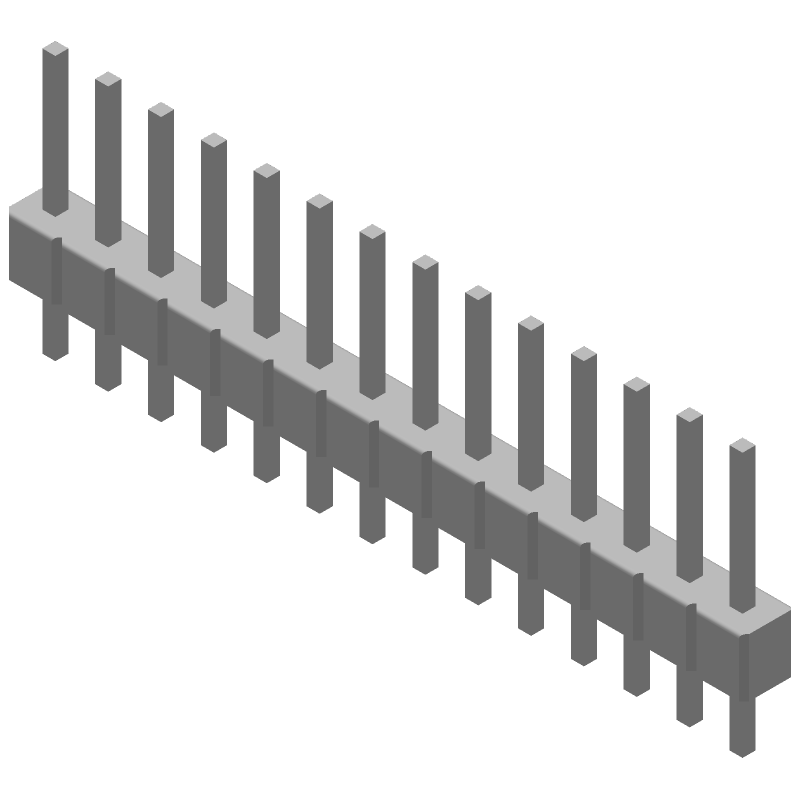 13 Pos 2.54mm Unshrouded Header, Male Pin, Gold/Tin, PBT, Thru-Hole