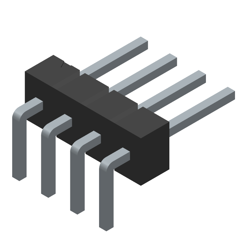 4 Pos Male Header, RA, 2.54mm Pitch, Solder, 3A, 350V