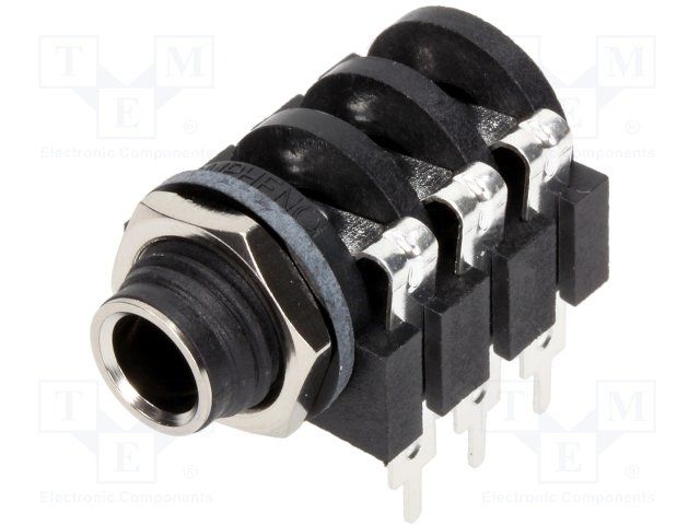Conn 1/4" Stereo Phone Jack F 3 POS 6.25mm Solder Lug RA Thru-Hole 6 Terminal 1 Port