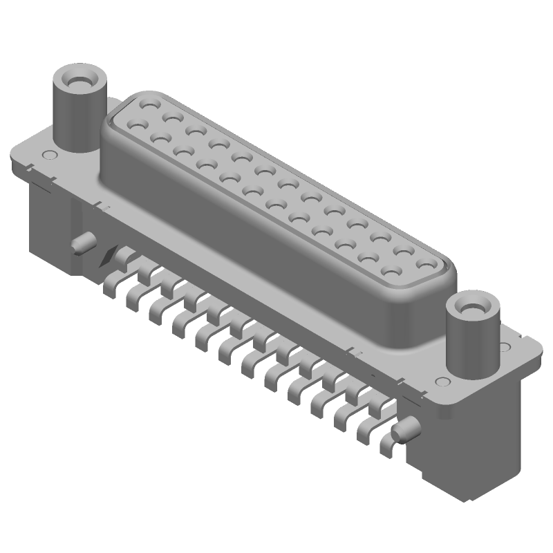 25 Pos Female D-Sub RA Connector, Gold/Tin Plated Bronze Contacts