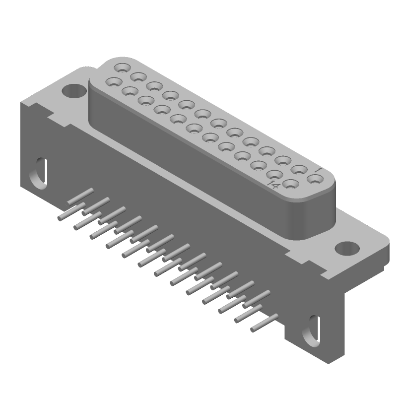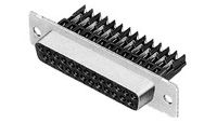 25 Pos D-Sub Female Connector, Right Angle, Through Hole, Gold/Tin