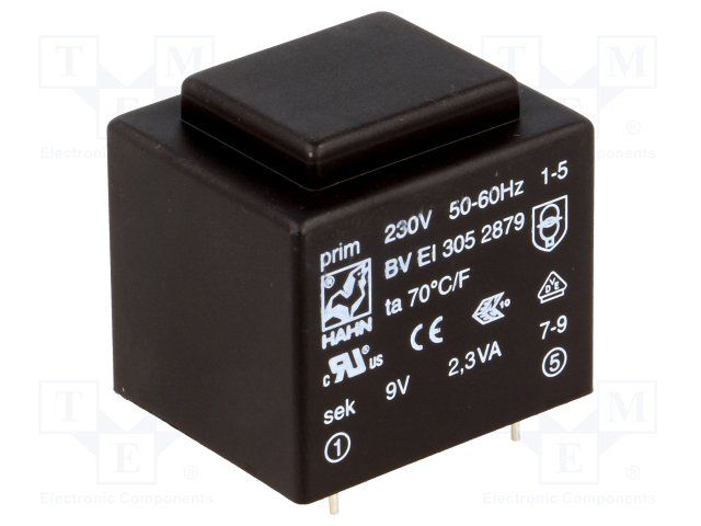 Transformer 1, 5VA 230V 2x9V 2x83mA