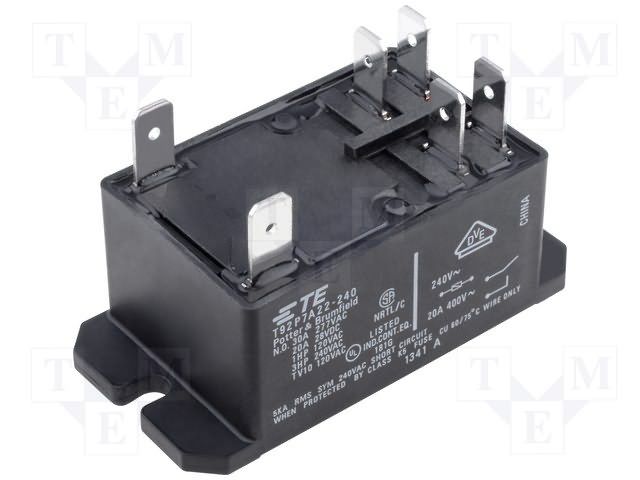 TE CONNECTIVITY T92P7D24-24 General Purpose Relay, T92 Series, Power, Non Latching, DPST, 24 VDC, 30 A