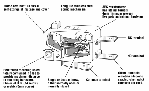 SPDT Snap Action Switch, 6A, 250VAC, Brass/Silver Contacts