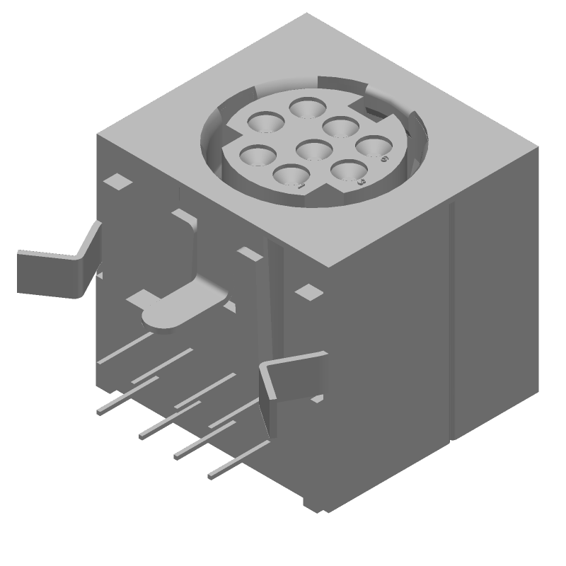 8 Pos Female DIN 41612 Right Angle Receptacle, Gold/Tin