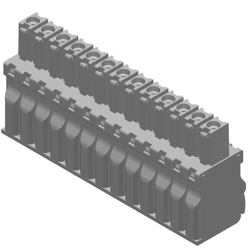 13 Pos Terminal Block, 5mm Pitch, 12A, 300V, Screw, Right Angle