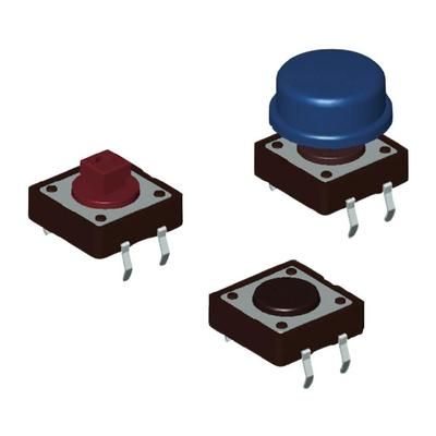 Switch Tactile N.O. SPST Square Button PC Pins 0.05A 12VDC 2.55N Thru-Hole