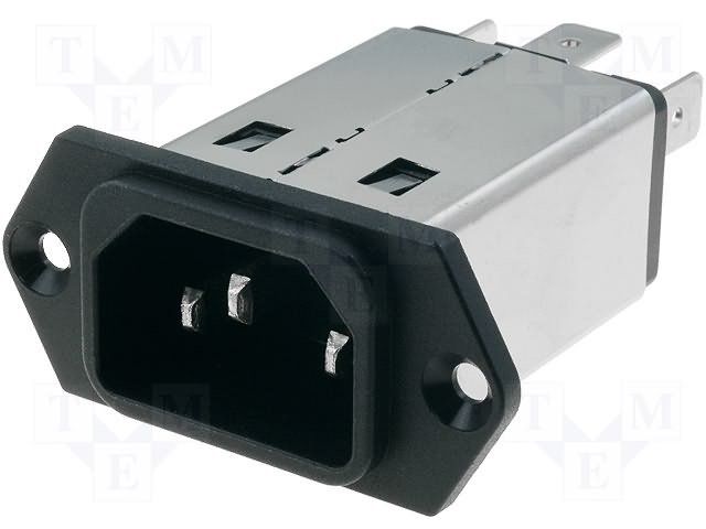 4A 250V IEC C14 Power Entry Module, 3 Pos, Fuse, Panel Mount