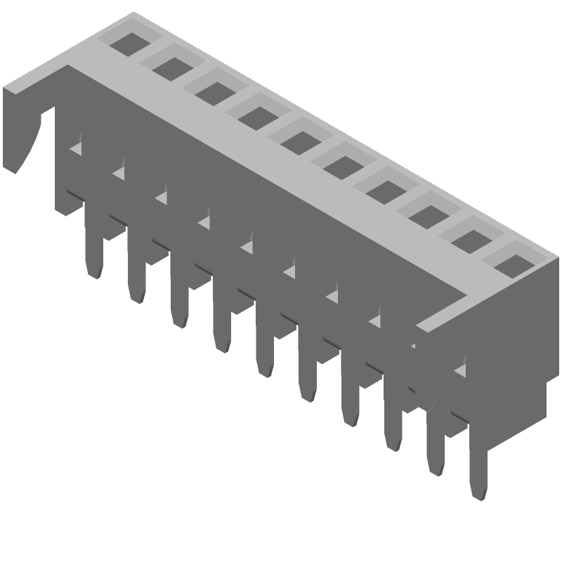 10 Pos, 1 Row, Male, RA Header, 2.54mm Pitch, Gold