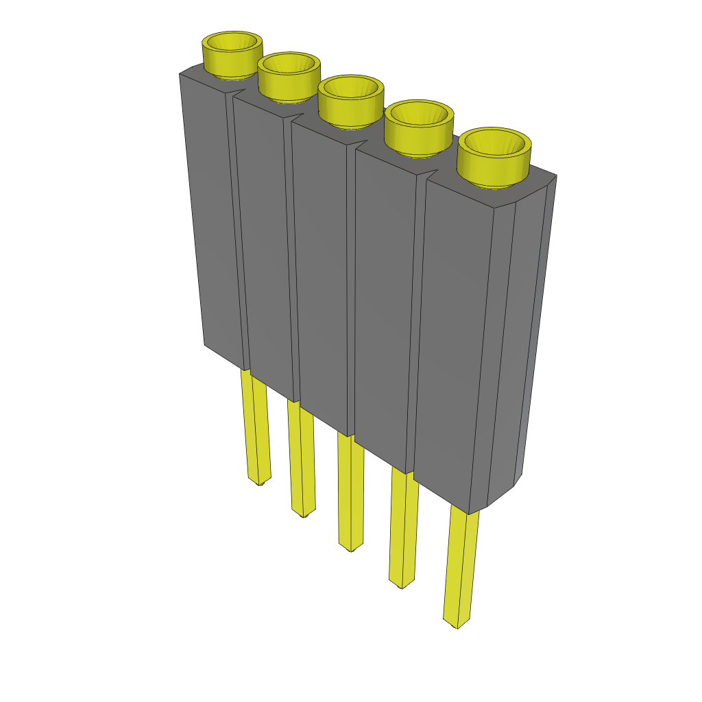 5-Contact SKT Socket Strip Header, 2.54mm Pitch, Through Hole Mount