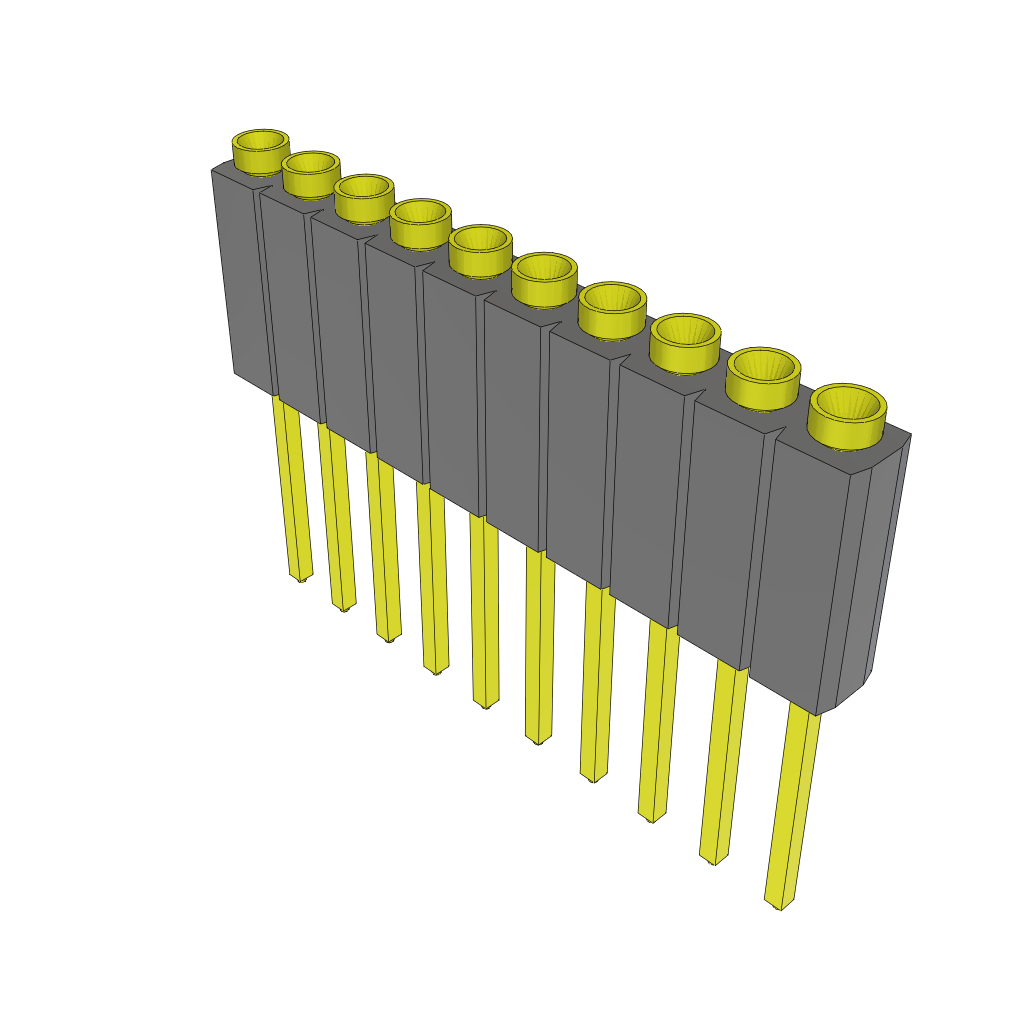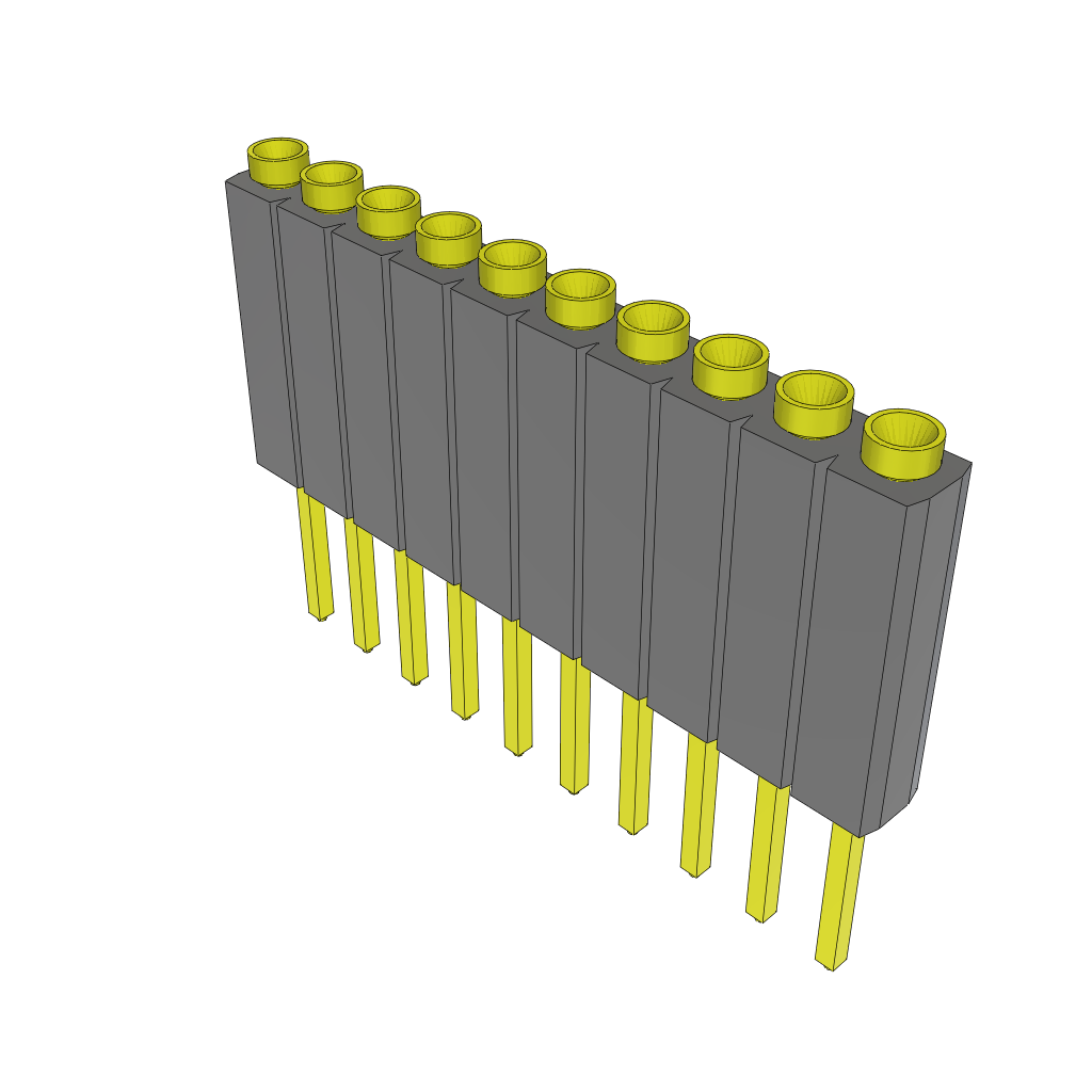 10-Contact Socket Strip Header, SKT, 2.54mm Pitch, Through Hole Mount