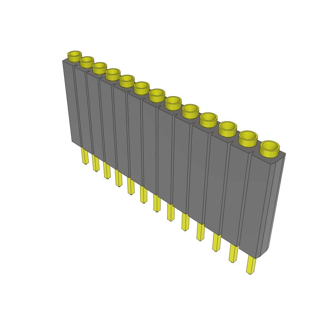 13-Contact SKT Socket Strip Header, 2.54mm Pitch, Through Hole Mount