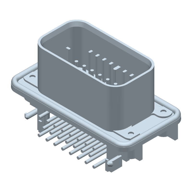 23 Pos Rectangular Connector, 17A, 250V, Gold/Tin, Male Pin, TH