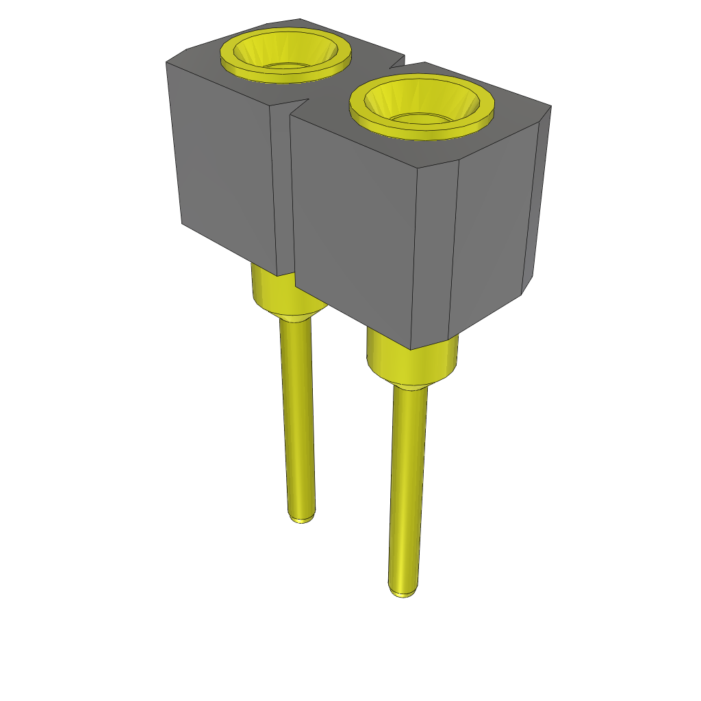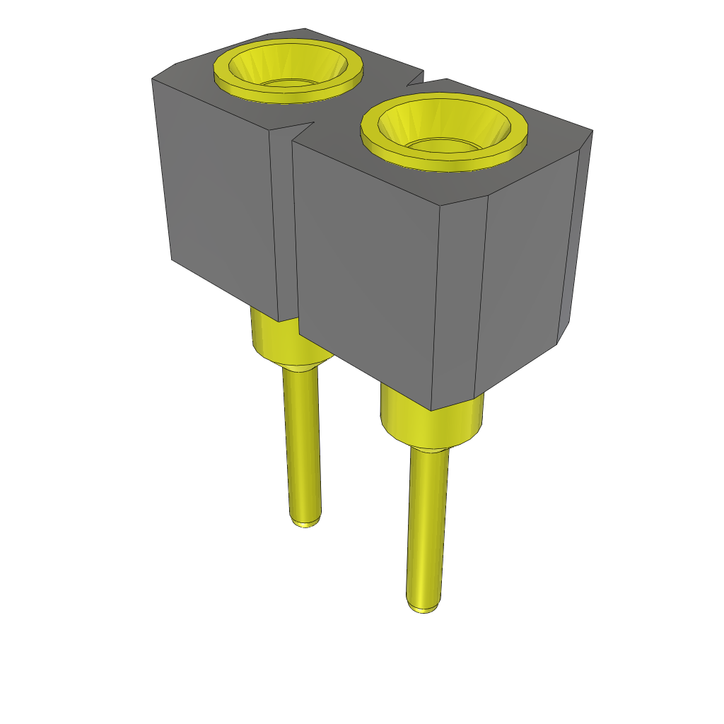 2-Contact Female Through-Hole Header, Gold Plating, 2.54mm Pitch