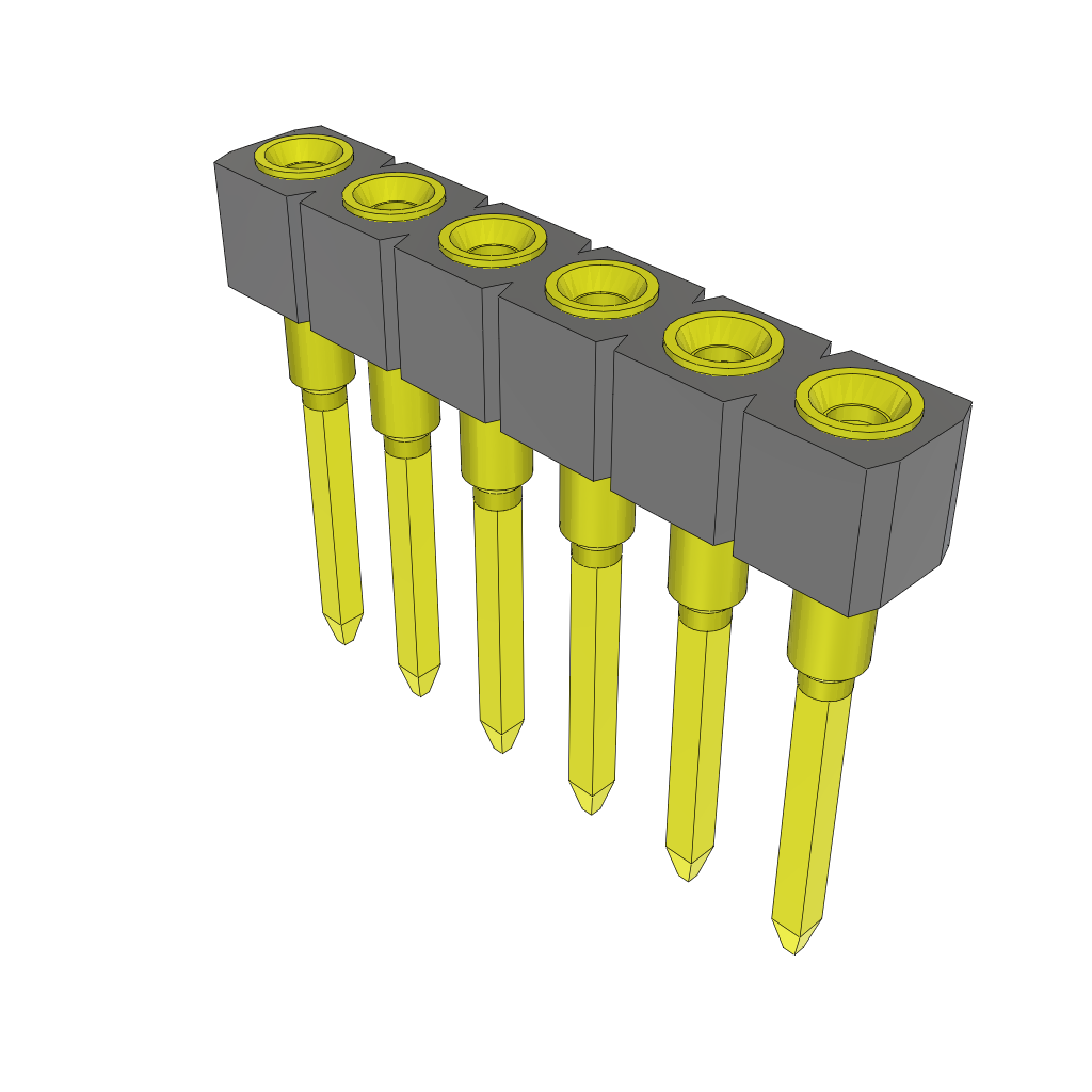 6-Contact SKT Socket Strip Header, 2.54mm Pitch, Through Hole Mount