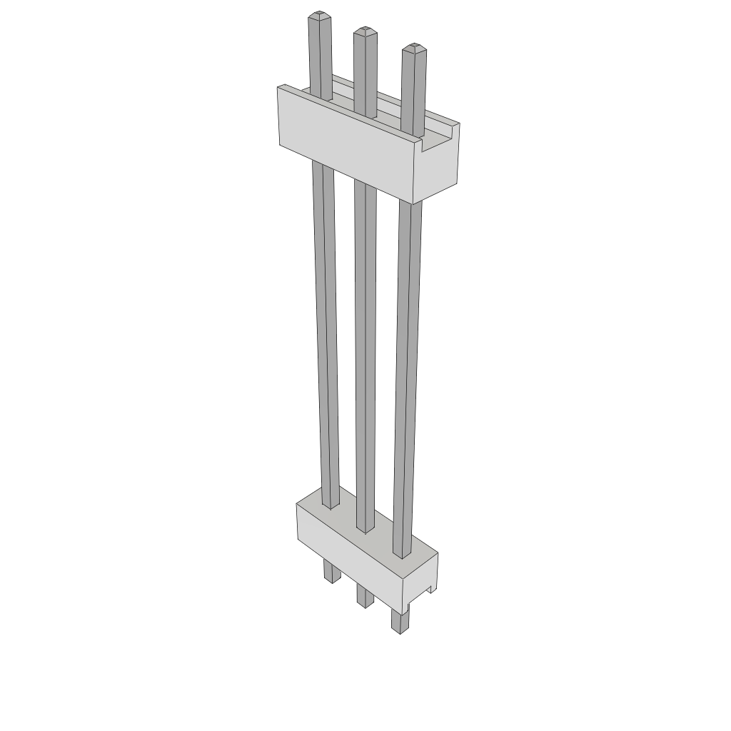 3-Contact HDR Board Stacker, 2.54mm Pitch, Through Hole Mount