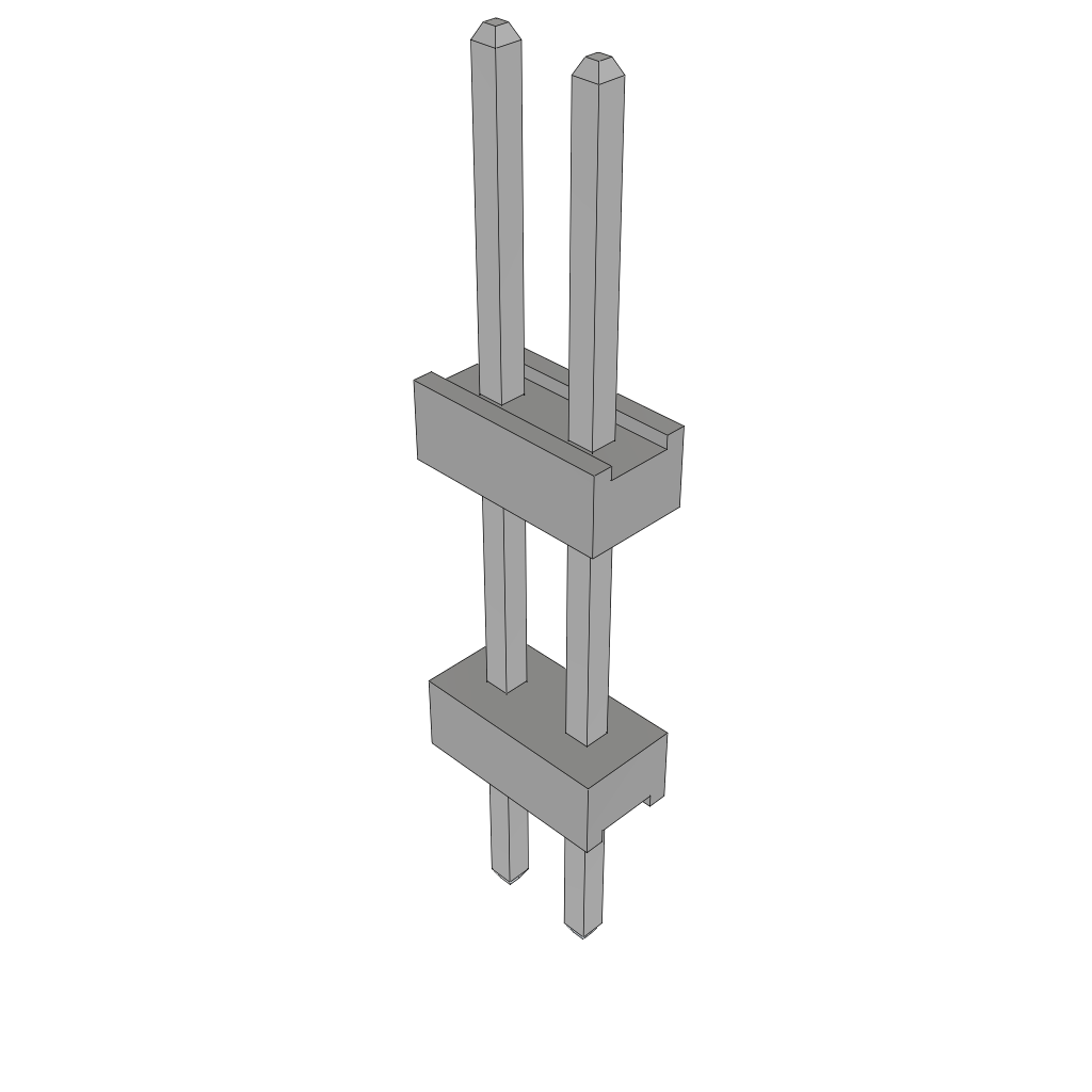 2-Position 2-Row Through-Hole Header, 2.54mm Pitch, Tin Contact Plating