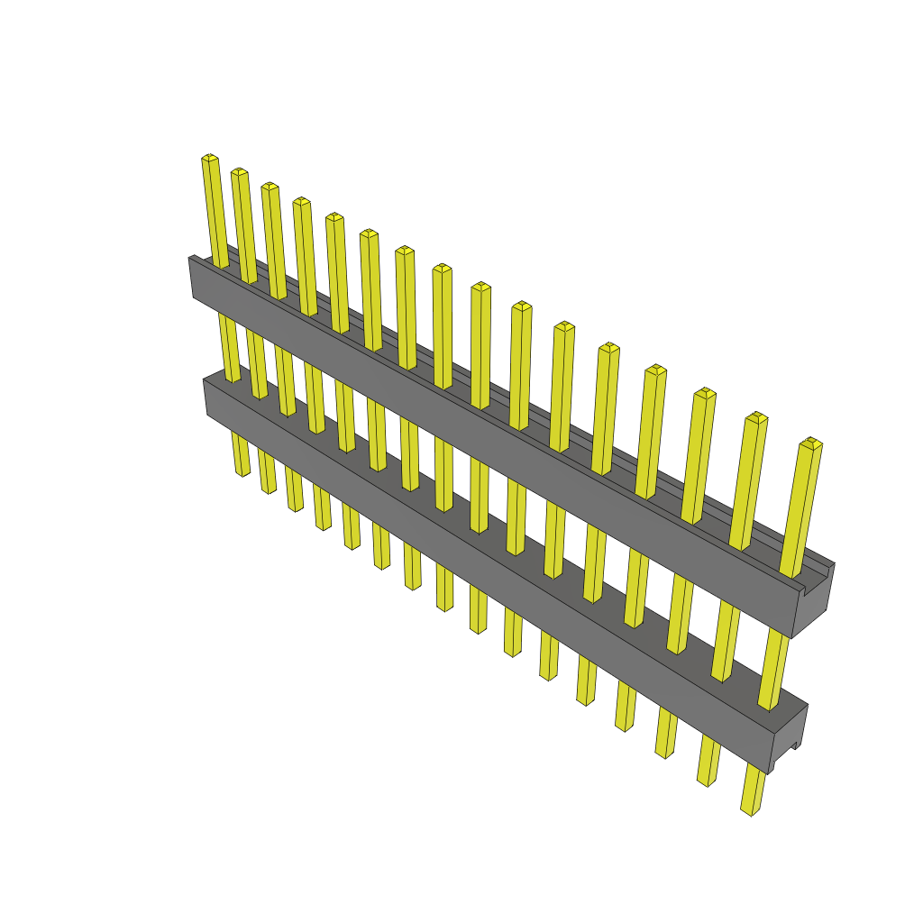 60-Position 3-Row Through-Hole Header, Gold Contact Plating, 2.54mm Pitch