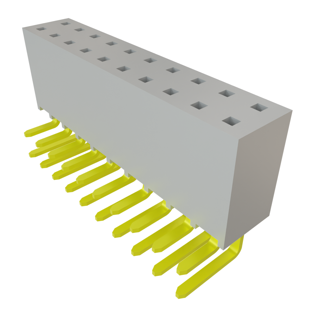 2.54mm RA Socket Strip, 20 Pos, Gold, 6.9A, 550V, Thru-Hole