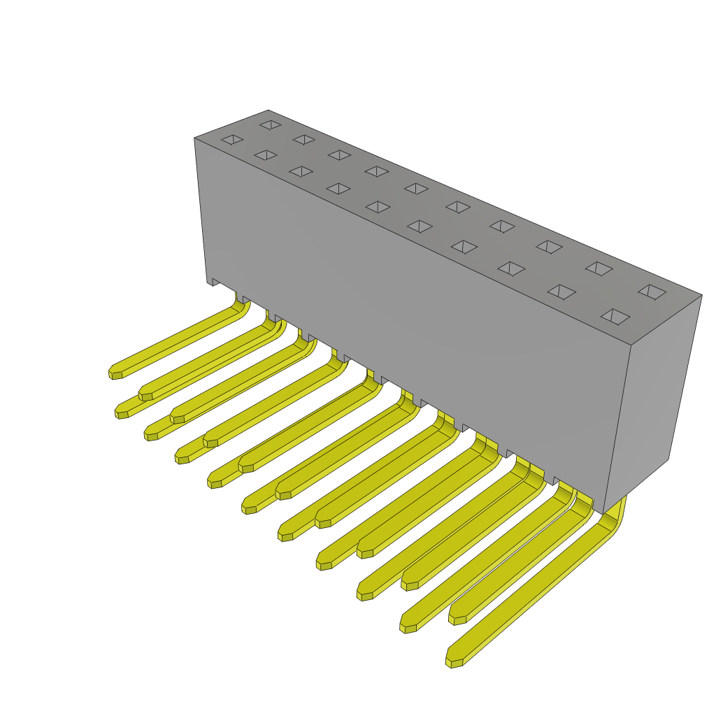 2.54mm 20 Pos 2 Row Socket Strip, Gold, Solder RA Thru-Hole