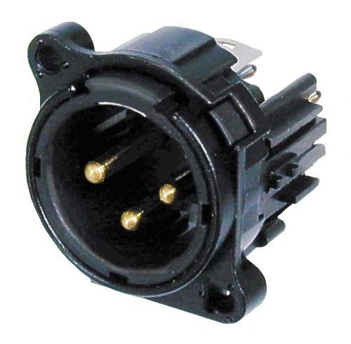 XLR Receptacle, 3-Pin, Male, PCBV, Plastic/Gold, Latchless, A Series | Neutrik NC3MAV-0