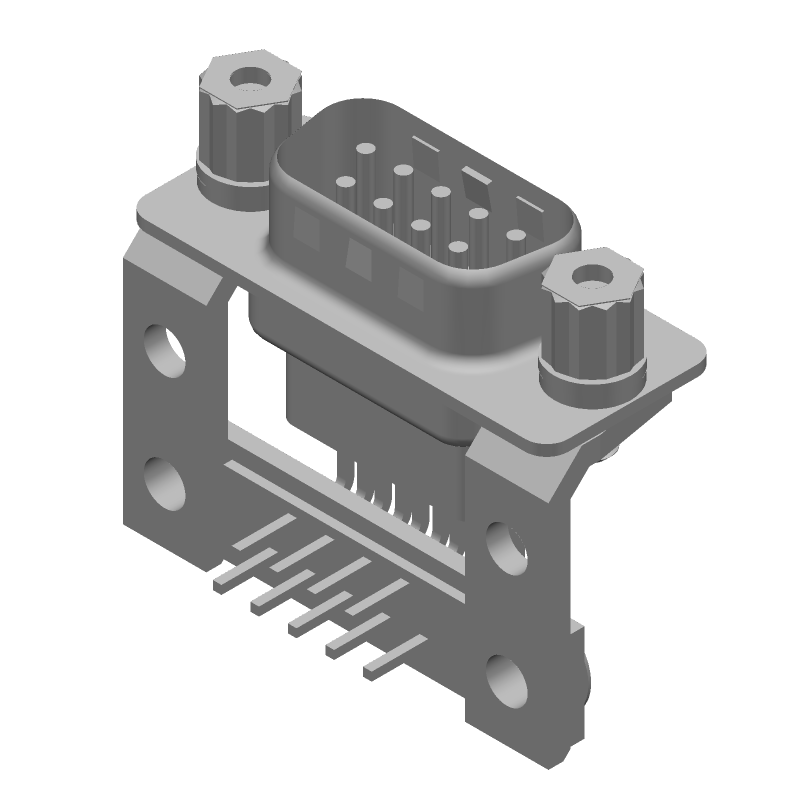 9 Pin D-Sub Connector, Male, Right Angle, Gold/Tin Plated Brass Contacts