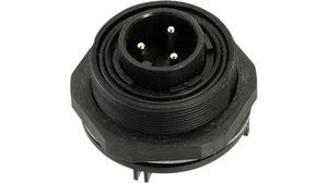 3 Pos Male Circular Connector, 12A, 250V, Solder, Thru-Hole, IP68