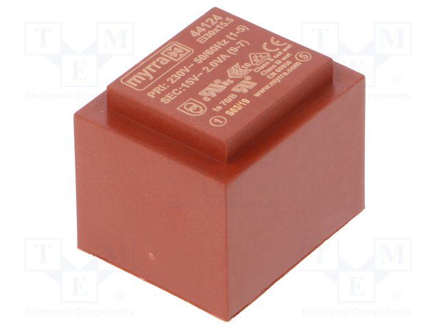MYRRA 44130 Isolation Transformer, 2 VA, 1 x 230V, 2 x 15V, 67 mA