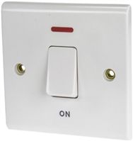 White 45 A Glacier White Neon Switch Double Pole Flush 7 mm, 1 Way Screwed Gloss, 1 Gang BS Standard, 230 V ac 86mm Neon