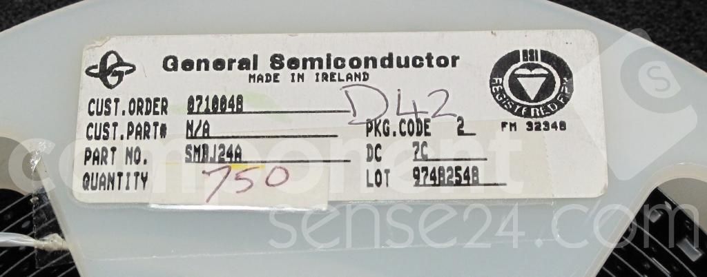 Trans Voltage Suppressor Diode, 600W, 24V V(RWM), Unidirectional, 1 Element, Silicon, DO-214AA, ROHS COMPLIANT, PLASTIC, SMBJ, 2 PIN